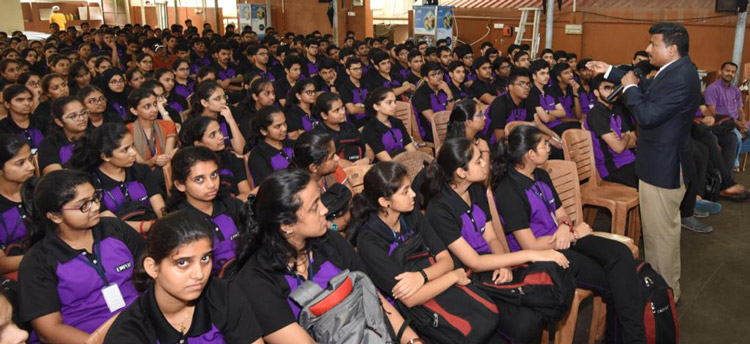 Dr Shivakumar Magada, professor and head, Department of aquatic environment management addresses the students at Expert College and delivered a talk on scope and opportunities in Agri and allied courses. This is to promote interest among the youth on food production sector including that of fisheries. He is planning to deliver 50 such talks in selected colleges so that it brings best brains to the farm universities. Since medicine and engineering colleges promote their institutes, youngsters were familiar with only those streams. But farm universities do not take up such promotional programs. Before the final exams, if we orient the students, many will join farm universities willingly. Dr Magada also holding the charges of Associate Director of Extension and doing these kinds of programs since five years.