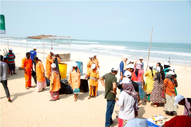 The week-long Beach cleaning programme was launched on 1.6.2018, at Panambur beach. Different line departments of Environment and Ecology, Department of Fisheries and students of College of Fisheries, Sahyadri Engineering college, NGOs and the general public actively participated in the beach cleaning programme, a stretch of 3.0 km of the beach was cleaned.