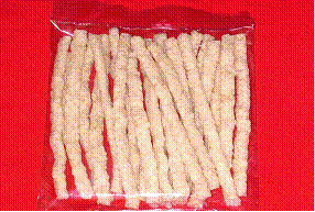 Cereal flours with fish mince was used for extrusion process. Twin screw extruder with co-rotating screws was used. The optimum processing conditions included barrel temperature of 90o – 120oC, screw speed of 350 rpm, die diameter of 4mm and a feeding rate of 7.2 Kg / hr.
