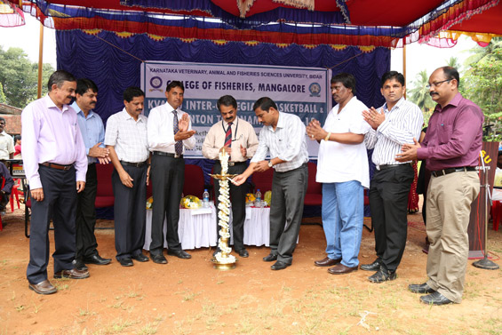 Dr. B V Shivaprakash, Director of Student Welfare, KVAFSU, Bidar inaugurated the New Basketball Court. Dr. Kishore Kumar C. K., Director & Chairman, Dept. Of Physical Education, Mangalore University inaugurated the tournaments on 30.09.2014 in the presence Dr. S M. Shivaprakash, Director of Extension, KVAFSU, Bidar and Sri Parshwanath P Sr. Assistant Director of Fisheries, Mangalore, as Chief Guests. Dr. K.M. Shankar, Dean, College of Fisheries, Mangalore presided over the function. About 140 students from 7 constituent colleges of KVAFSU, Bidar participated. The Colleges participated were Veterinary College, Bangalore, Veterinary College, Bidar, Veterinary College, Shimoga, Veterinary College, Hassan. Dairy Science College, Bangalore, Dairy Science College, Gulbarga and College of Fisheries, Mangalore.