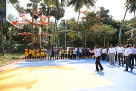 The new Basketball court Inaugurated by Dr. B. V. Shivaprakash, Director of Student Welfare, KVAFSU Bidar.