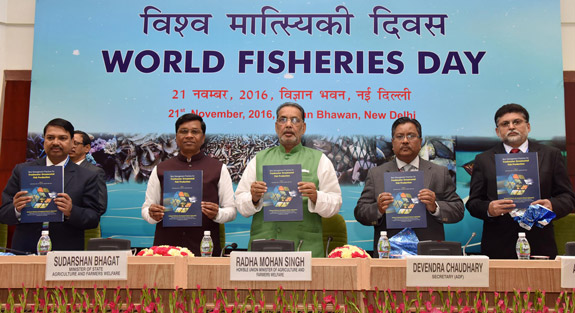 A book on "Better Management Practices for Freshwater Ornamental Fish Production" authored by Dr Shivakumar Magada, Dr Atul Jain, Dr Anna Mercy and others was released by Sri Radha Mohan Singh, Hon'ble Minister for Agriculture and Farmers welfare, Government of India on the occasion of World Fisheries Day 2016 at Vigyan Bhavan, New Delhi