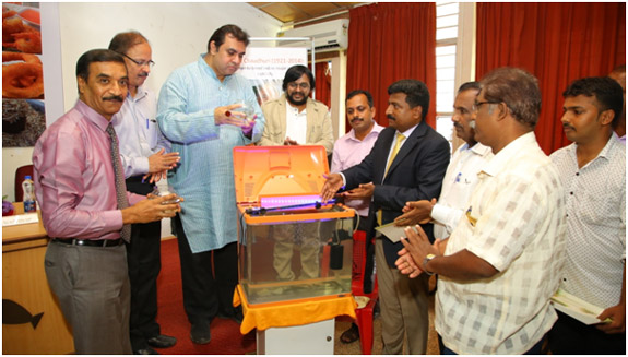 ShriPramodMadhwaraj, Minister for Fisheries, Sports and Youth Affairs, Govt. Of Karnataka inaugurating the program by releasing Amur carp into an aquarium