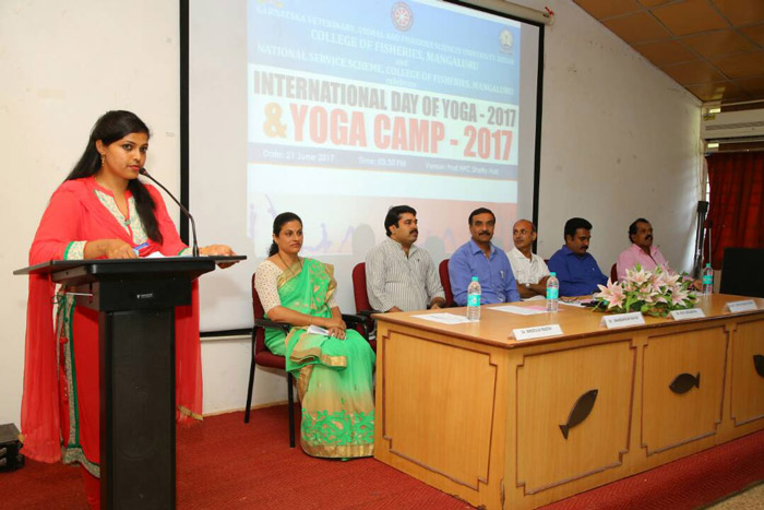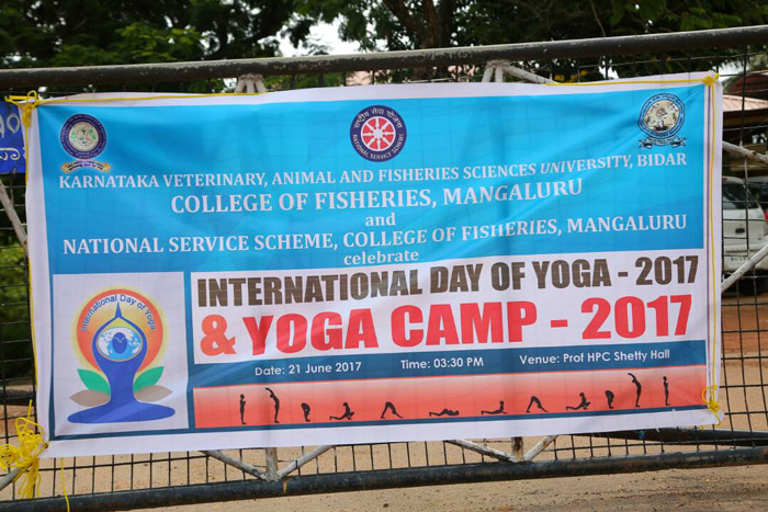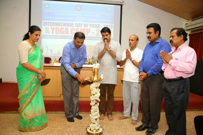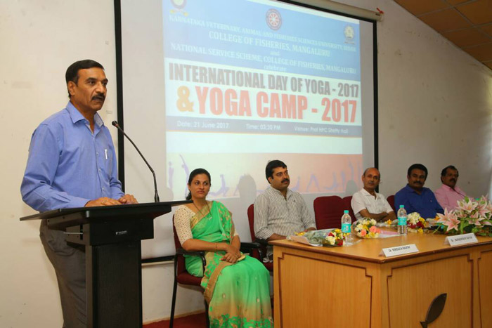 was celebrated in the College on June 21st, 2017 at 3.30 PM. The Yoga Day was inaugurated by Dr. Jnaneshwar Nayak (Incharge of Patanjali Samithi Haridwar for Karnataka), Dr. M.N. Venugopal (Dean-FIsheries) presided over the function, Dr. A.T. Ramachandra Naik (NSS Programme Officer, CoF, M'luru) briefed about the International Yoga Day, Dr. Mridula Rajesh (Staff Adviser) welcomed while Sri Shashidhar Badami (Staff Adivser) proposed vote of thanks. The function continued with Demonstration & Yoga camp was conducted by Sri Govindaraya Prabhu (Yoga Trainer, Patanjali Yoga Samithi Haridwar for Karnataka)