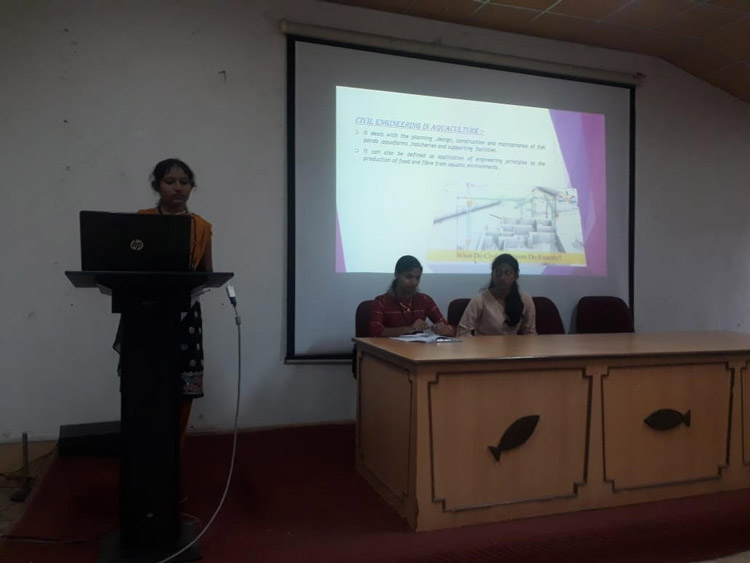 To expose the students to various other fields in the area of Science, arts, media, fiction, literature etc that also have linkage to fisheries UG seminars are being undertaken from 19 Oct, 2019. Various subjects are being allotted to a group consisting of I, II and III year BFSc students to prepare the brief project report and a presentation. Which will also provide the opportunity to the students to explore other areas that may be related to fisheries and aquatic sciences.