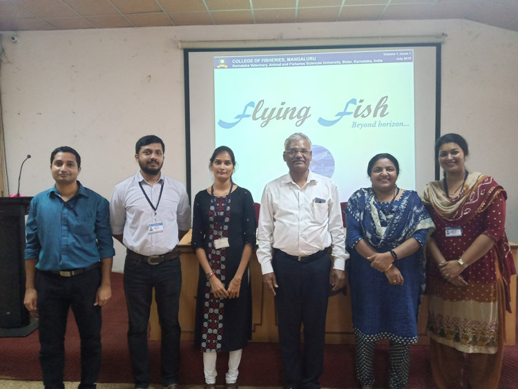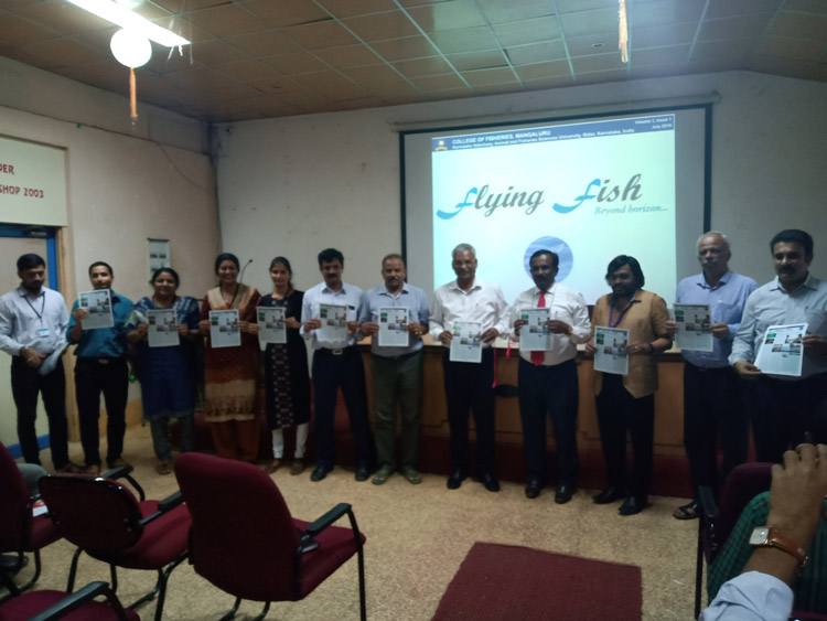 The college newsletter - Flying Fish was released by Dr. Managing Director, KFDC; Mrs Beena Shetty and Dr. S.M. Shivaprakash, Former Dean (Fisheries) and by Dr. Senthil Vel. A., Dean(Fisheries) on 25th September 2019. This newsletter brings out the activities, research and other studies carried out by the college staffs and its researchers.