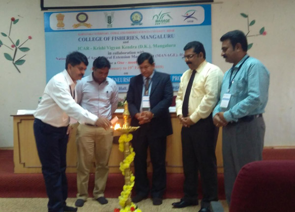 Aquaclinics and Aquapreneurship Development Programme (a one month training programme) was inaugurated by College of Fisheries and ICAR KVK DK in collaboration with National Institute of Agricultural Extension Management (MANAGE), Hyderabad on 21st January 2019 in Prof. H.P.C Shetty hall at 10:00 am.
