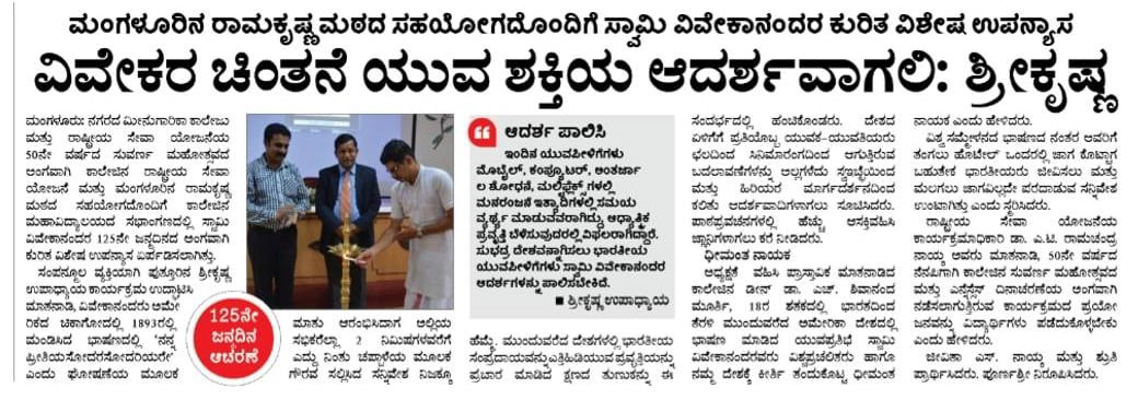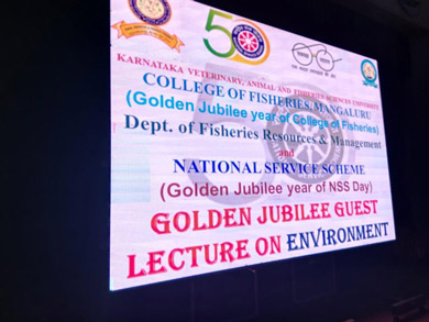 To commemorate the 125th year of Swami Vivekananda's historic address at the World Parliament of Religious at Chicago held during September, 2018 and to memorialize the Golden Jubilee year of Fisheries College and the National Service Scheme, The NSS unit of College in collaboration with M/s Ramakrishna Mission, Mangaluru had organized the lecture to highlight the significance of Swami Vivekananda's life and message to the present young generation.