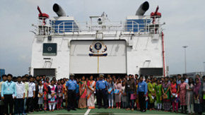 Students got an opportunity to visit ICGS –Vikram on 12th October 2019 at Panambur Port, Mangaluru. Commandant Raj Kamal Sinha was kind enough to arrange the visiting pass for all our students and staff as per Dean Dr.Senthil Vel request. The officers gave a brief explanation about the background, equipment and unique features of ICGS _Vikram and also arranged a short film based on the role of coastal guards in India. Later the students had interactive sessions with the coast guard officers where they shared their experiences and also gave insight on the selection criteria. The visit was very informative.