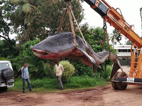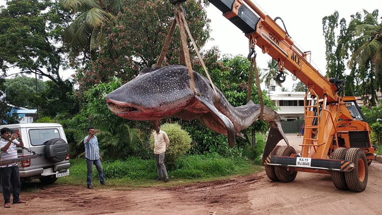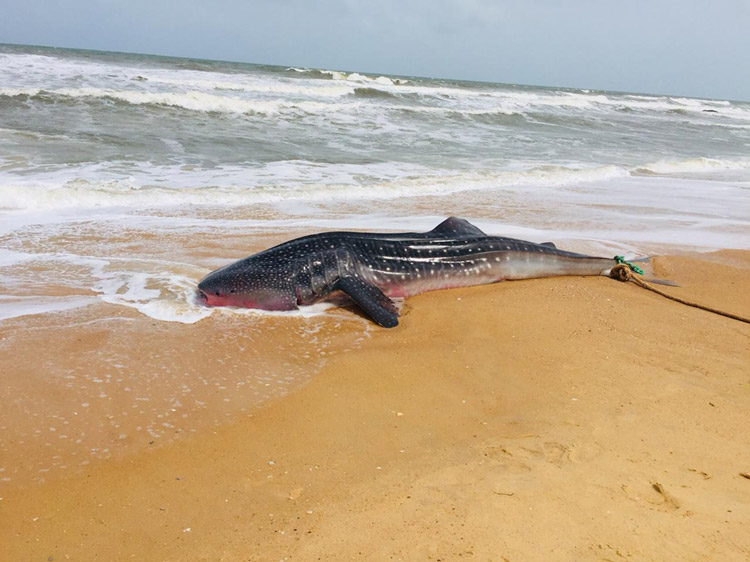 Whale shark beached at Surathkal died due to isolation, starvation, external injury: College of Fisheries