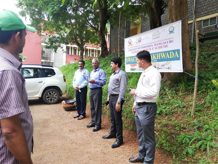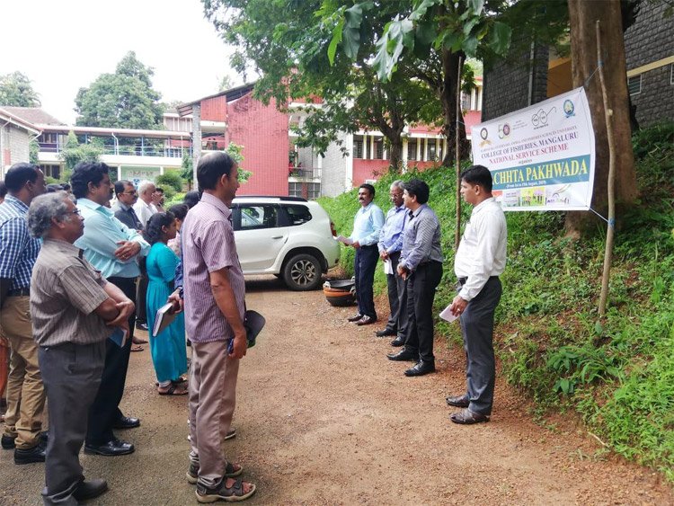 The NSS unit of the colllege with staff and students observed the Swachhta Pakhwada, a 15 day cleaning programme. The programme was inaugurated on 1st Aug 2019 with speech by Dr. S.M. Shivaprakash, former HoD, FRM dept. followed by Pledge oath taking felicitated by Dr. A. Senthil Vel, the Dean (Fisheries), CoF, Mangaluru. Welcome by Dr. A.T. Ramachandra Naik, NSS Prog. Officer. & Vote of thanks by Mr. Manojkumar, Phy. Edn. Head.