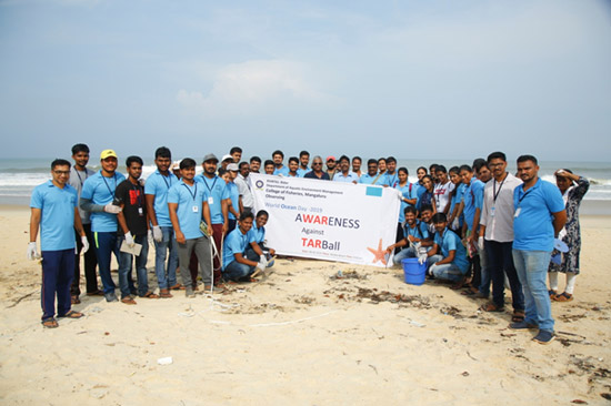 Fisheries college team at Shashihithlu beach observing “World Ocean Day 2019” with a slogan “War against tarball”