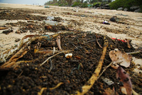 Plastic menace at beach and the tarball |