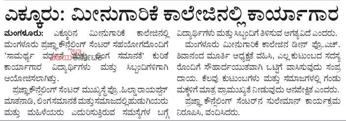 The programme was organised in collaboration with Prajna Counselling Center, Mangalore for the benefit of 3rd BFSc students, was held from 26th to 27th March 2019 between 2.00 to 5.00 PM on both days.