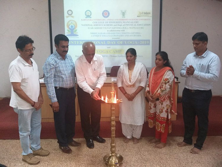 International Day of Yoga was observed in the College in collaboration with NSS (CoF) and Physical Education Dept. (CoF), ICAR-KVK and Shree Sahara Prakrithi Chikitsa Kendra (SSPCK) - A Unique Yoga Naturopathy and Ayurveda, Mangalore on June 21st, 2019 at 4.30 PM in HPC Shetty hall.