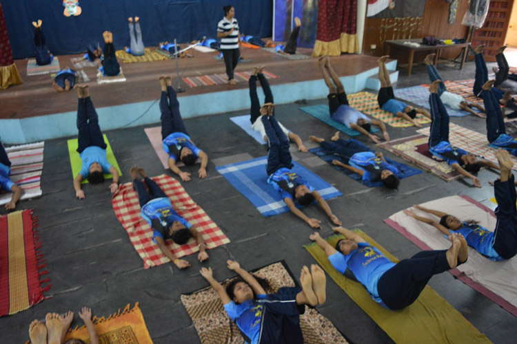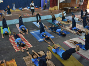 The programme continued with participation and demonstration of yoga exercises by Dr. Tripti Nithin, Yoga Teacher, SSPCK. All the staff and students were present for the programme.