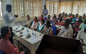 The training programme was inaugurated by Mrs. Asha Serdana, President, Grama Panchayath, Laila and presided by Mrs. Yashoda, President, Samagra Sanjivini Grama Mattada Okkuta, Belthangadi. Other guests present during the occasion were Mr. Jayananada, Taluka Valaya Melvicharakaru, Belthangadi; Mrs. Veena, Panchayath Officer; Mrs. Savithri K., Secretary, Snaha Sanjivini.