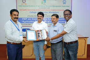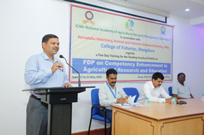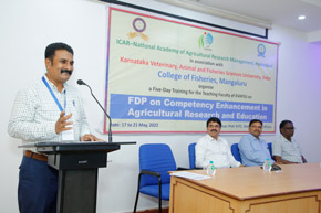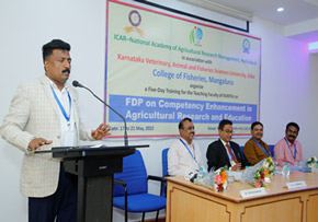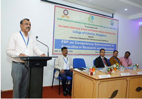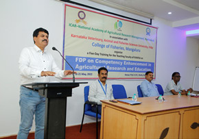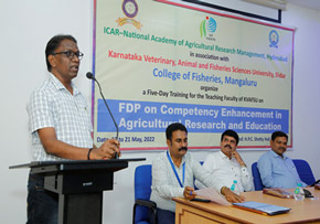 A five-day training was organised in the college for the benefit of teaching faculty of Karnataka Veterinary, Animal and Fisheries Sciences University (KVAFSU) from 17 to 21 May, 2022. The training on ‘Faculty Development Programme on Competency Enhancement in Agricultural Research’ and Education was sponsored by National Academy of Agricultural Research Management (NAARM), Hyderabad a sister institute of the Indian Council of Agricultural Research, New Delhi.