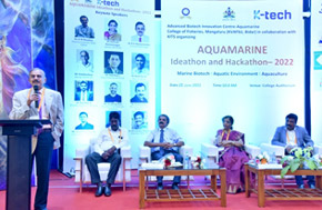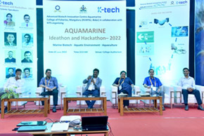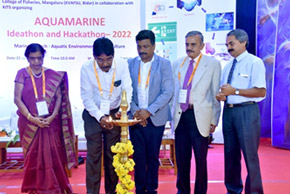 The College of Fisheries, Mangaluru under the project ABIC-AM organized Ideathon and Hackathon Aquamarine-2022 on 22nd June 2022 in the college auditorium. Dr K M Shankar, Former Dean of CoF and Emeritus Scientist and NAAS Fellow was the inaugurator of this event. Dr Indrani Karunasagar, Director, Projects & DST-Tech, NITTE DU, Dr B A Shamasundar, Senior Food Technologist, Mysuru were the Chief Guests for the event. The event was presided by Dr Shivakumar Magada, Professor and Dean, College of Fisheries, Mangaluru.