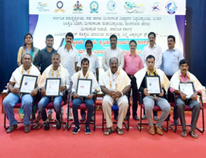 The Chief guest of the programme, Dr. S. M. Shivaprakash, Executive Member, Pillay Aquaculture Foundation spoke on the different culture practices in fish farming. Shri. Harish Kumar, Joint Director, Department of Fisheries, Government of Karnataka briefed regarding the schemes and various programmes to boost the fisheries sector. Dr. K.M. Rajesh, Principal Scientist (CMFRI) and Secretary, Asian Fisheries Society, Indian Branch highlighted the innovations in the field of fisheries. The event was attended by 28 fish farmers. On this occasion, Hon’ble minister felicitated ‘Best Fish Farmer’ award to the selected farmers.