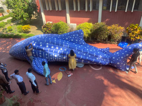 The College of Fisheries, Mangaluru in collaboration with Oracle Private Ltd., Bangalore and Wild Life Trust of India organized a campaign on “Save the Whale Shark” on 28-02-2023 at College of Fisheries, Mangalore. The whale shark (Rhincodon typus) is the largest fish on earth and a keystone species in marine ecosystem has the highest level of protection as Schedule I species in the Wildlife (Protection) Act, 1972. IUCN listed this species as Endangered- very high risk of extinction in the wild. The campaign aimed to unite marine fishermen, rural communities, and students for whale shark awareness and conservation. Dr. Kathirvel Pandian, Senior Scientist, NBFGR inaugurated the programme and briefed about his research in NBFGR on whale fisheries. The chief guest of the programme, Mr Sajan John, Co-PI, Marine Project, wildlife trust of India spoke on the life history traits of whale shark and importance of whale sharks in the marine ecosystem. Mr Charan Kumar, Assistant Manager and Project Lead, Whale Conservation project shared his experience and briefed the gathering about Save the Whale Shark campaign. Dr Shivakumar Magada, Dean (Fisheries) presided over the program and delivered a short presentation on “Whale Shark Conservation”. Later Wildlife Trust of India and Oracle Private Ltd., Bangalore bestowed our college with a 30 feet inflatable whale costing around 3 lakhs. Dr. H. N. Anjanayappa, Professor and Head of the Division welcomed the guests and Dr S. R. Somashekara, Professor and Head, Dept. of FESE proposed the vote of thanks. The event was compeered by Dr Nayana P, Assistant Professor, Dept. of FRM.