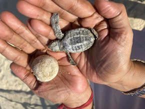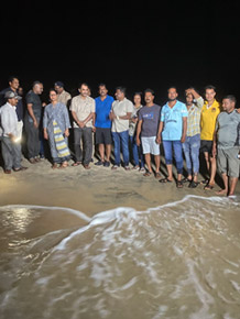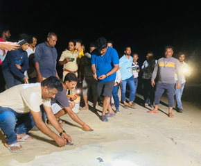Olive Ridley turtles are a species of sea turtle that are found in warm and tropical waters around the world. They are named for the greenish color of their skin and shell, which can appear olive in some lights. These turtles are considered one of the smallest of the sea turtles, with adults typically measuring around 2 to 2.5 feet in length and weighing between 75 and 100 pounds. ridley turtles are known for their unique nesting behaviour, which is called arribada. During an arribada, thousands of female turtles will come ashore at the same time and burrow about 30-40 cm deep to lay about 120-130 eggs on the same beach. Incubation takes about 40 48 days. This usually happens once or twice a year, with the largest arribadas occurring in Costa Rica and India. Despite their wide distribution, olive ridley turtles are considered to be a vulnerable species due to threats such as habitat loss, pollution, and incidental capture in fishing gear. Conservation efforts are underway around the world to protect these turtles and their nesting beaches, including measures such as limiting fishing activity in key areas and implementing beach management practices to minimize disturbance to nesting females. In this Honnavara region, responsible active citizenry and pro-active departmental actives were observed.