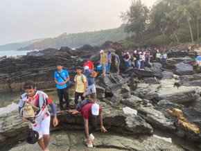 In the evening, team visited Tonka Peninsular Beach, Honnavar to see the “Olive Ridley Turtle” nests. Students released the turtles to the sea at 8.0 pm. Fishermen also assisted us to locate turtle trail. Mr Rajesh Tandel, Mr Ramesh and others fishermen involved and assisted us. In all the sites, the team cleaned the sites and collected 4-5 bags of plastic bottles and other non-degradable garbage and disposed it.