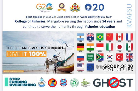 As a part of “Ocean-20” of G-20 Summit, College of Fisheries, Mangaluru in Collaboration with the Department of Forest and Ecology, Government of Karnataka organized Beach cleaning programme on 21.05.2023 at Tannirbhavi Beach, Mangaluru.