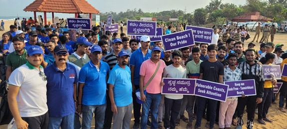 The campaign witnessed a significant turnout, with students from various colleges in the city and local residents converging at the beach. Additionally, morning beachgoers and locals spontaneously joined the team in the cleaning efforts. The team diligently collected discarded waste items left by tourists and visitors, including plastic straws, spoons, food wrappers, cups, bottles, as well as fishing-related debris like nets and ropes. All of these waste materials were collected in gunny bags and garbage bags, subsequently handed over to the Mangalore City Corporation for proper disposal.