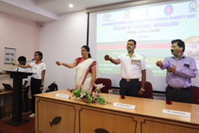 Dr S Varadaraju, HoD, Dept. of FET and SCSP-TSP Co-Ordinator, of the college welcomed the gathering. Mr Prasad said that people must respect the roots and inspired the students by sharing his life experiences and insisted the students to take up education seriously and serve the society in a much better way. Dr Magada, in his presidential remarks said that everyone must acquire harmless ego and self-esteem and practice what is rational and humane by nature. He also sang the biographical song on Dr Ambedkar written by Dr Siddalingaiah. Mr Rajkumar Naik, Deputy Director, MPEDA was honored on the occasion.