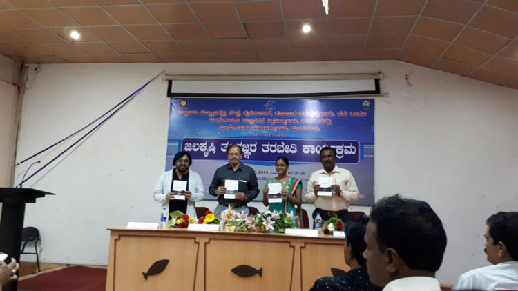 A skill development program on Aquaculture Technician Training was organized by the Department of Aquaculture, College of Fisheries, Mangaluru with funding support from National Fisheries Development Board, Hyderabad for 25 participants of Dakshina Kannada for a period of 25 days from 12.06.2018 to 07.07.2018. The training covered various aspects of fish farming like pond reparation to grow-out of table fish. The training constituted 70 hours of theory and 130 hours of practical as envisaged by Agricultural Skill Council of India (ASCI).