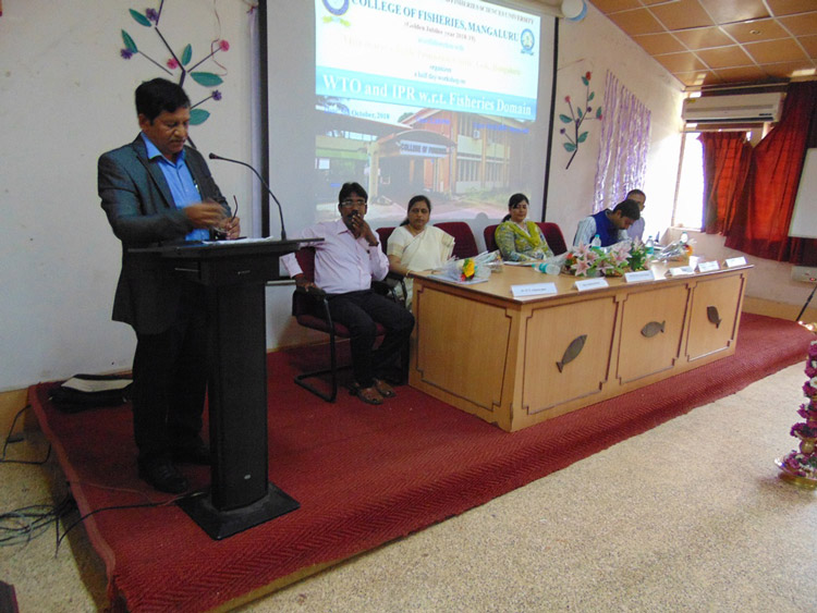 A one day workshop was organzed on "Intellectual Property Rights and WTO issues with respect to Fisheries Domain" on 05-10-2018 at 2:300 pm in Prof. HPC Shetty Hall. This was organized in collaboration with Visvesvaraya Trade Promotion Center (VTPC). GOK, Bangalore.