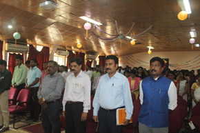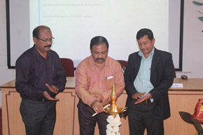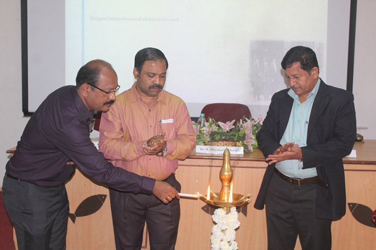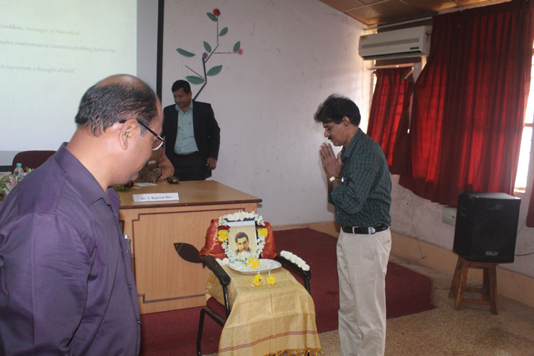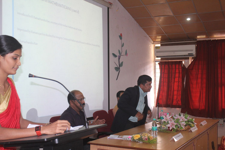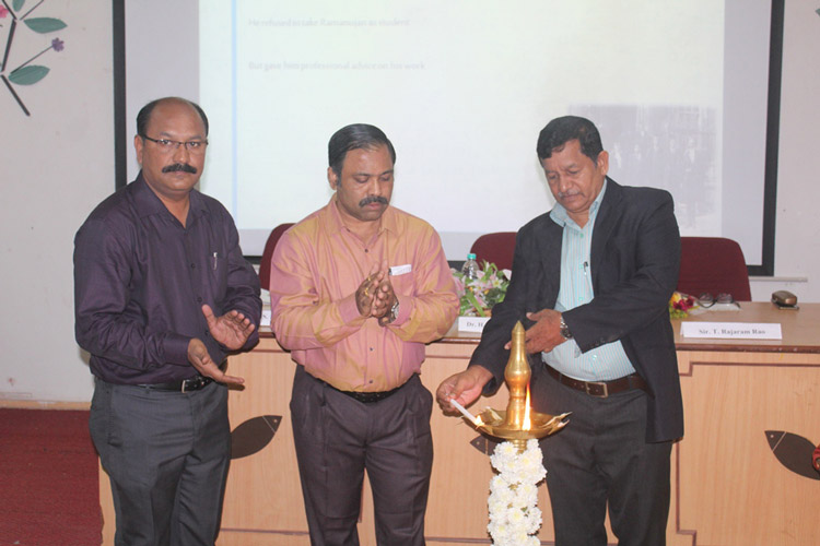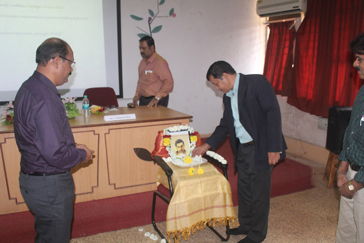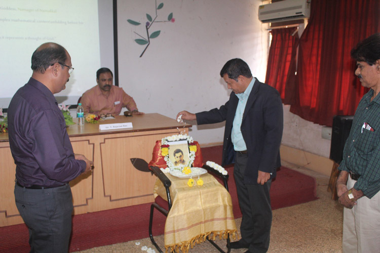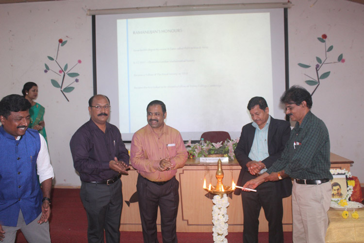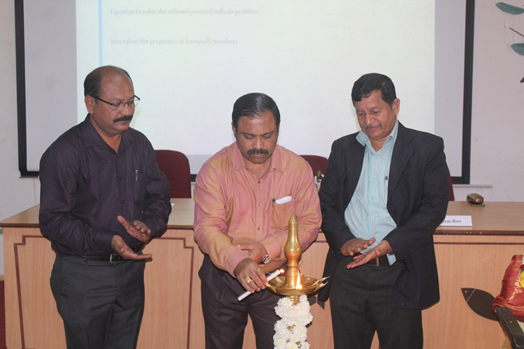 The event began with the invocation followed by the welcome speech of Dr. Somashekar, Prof and Head, Dept. of FESE. Chief guest Sri T Rajaram Rao ,The Principal, Vikas College, Mangalore inaugurated the programme by lighting the lamp and also offered floral tributes to the great mathematician- Sri Srinivasa Ramanujan.