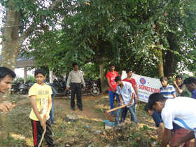 NSS regular activities were conducted periodically involving student volunteers like campus cleaning programme, planting of fruit and flower yielding saplings, garden plants, watering, clearing of terrestrial weeds, unwanted materials include broken tiles, tires, concrete bricks, tree branches, bushes, picking up of plastics etc.